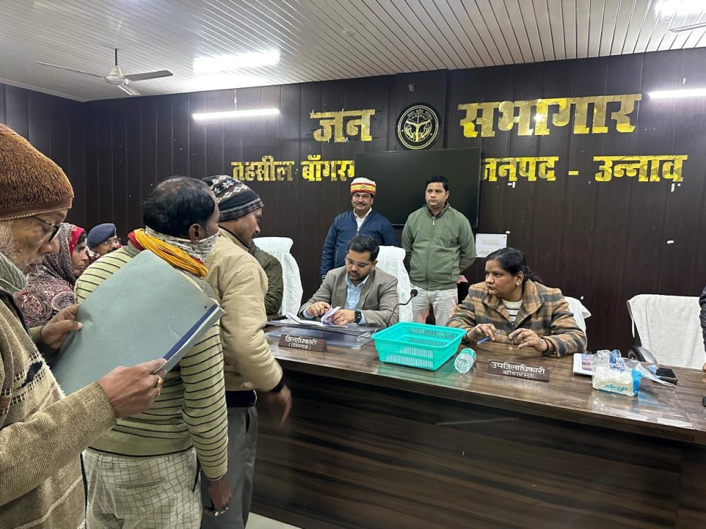 उत्तर प्रदेश सरकार की मंशा के अनुरूप जन समस्याओं एवं शिकायतों के प्रभावी, गुणवत्तापूर्ण व समयबद्ध निस्तारण हेतु तहसील बांगरमऊ, उन्नाव में आयोजित जिला स्तरीय सम्पूर्ण समाधान दिवस के अवसर पर मा0 विधायक बांगरमऊ श्री श्रीकान्त कटियार की उपस्थिति में जिलाधिकारी श्री गौरांग राठी एवं पुसिल अधीक्षक श्री दीपक भूकर द्वारा जनसामान्य की समस्याएं व शिकायतें सुनीं गयीं।